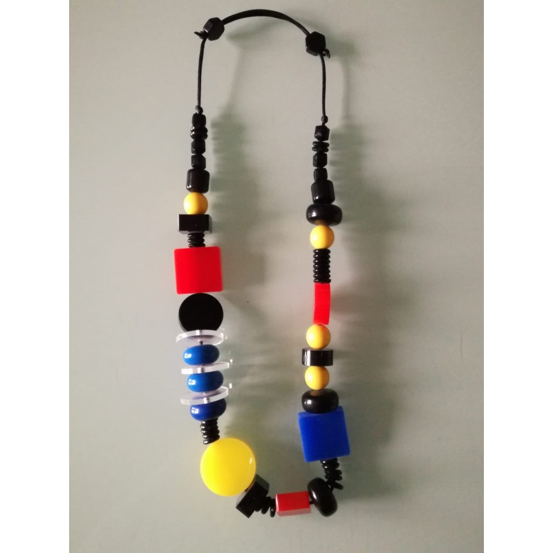 Necklace with various pieces of different shapes and/or colors Handmade Material: plexiglas and resin Length: approx. 15 cm + adjustable lanyard PRODUCT CODE: CAF 001
