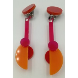 Orecchini tondo + due rombi.Realizzato a mano.Dimensioni: 75x35 (h x l)Materiale: plexiglass.CODICE PRODOTTO: OC/P 005-6