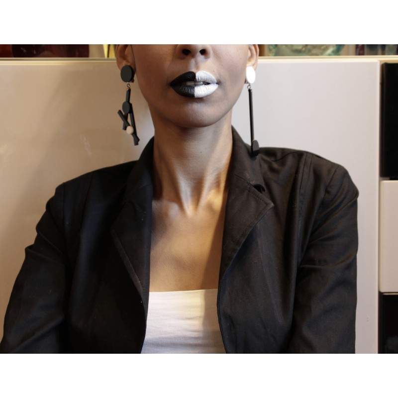Orecchini bastoncino lungo Totem con monachella in argento 925Realizzato a mano.Dimensioni: 80x35 (h x l)Materiale: plexiglass.CODICE PRODOTTO: OBL 001